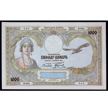 1000 dinarjev 1931 - XF/aUNC