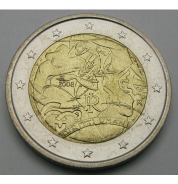 Opis: v jedru kovanca sta upodobljena moški in ženska z oljčno vejo, žitnim klasom, zobatim kolesom in bodečo žico, ki simbolizirajo pravico do miru, hrane, dela in svobode. Med osebama je monogram Republike Italije »IR« ter letnica izdaje »2008«. Na spodnji strani podobe so členi verige, ki oblikujejo številko »60«, in napis »DIRITTI UMANI«. Na desni strani so začetnice »MCC« umetnice Marie Carmele Colaneri in oznaka kovnice »R«. Na kolobarju je 12 zvezd Evropske unije.