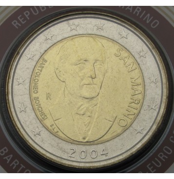 Opis: dvanajst zvezd Evropske unije na kolobarju kovanca in letnica izdaje „2004“ v sredini spodaj obkrožajo doprsno podobo Bartolomea Borghesija. Levo od doprsja je napis „Bartolomeo Borghesi“, druga nad drugo pa so izpisane črka „R“ in začetnice graverja „E.L.F.“. Desno od doprsja je beseda „San Marino“.