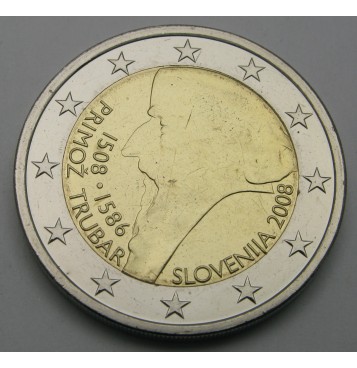 Opis: v jedru kovanca je upodobljen profil Primoža Trubarja. Napis »PRIMOŽ TRUBAR« in letnici »1508–1586« so na levi strani, na desni strani spodaj pa je napis »SLOVENIJA 2008«. Na kolobarju je 12 zvezd Evropske unije.
