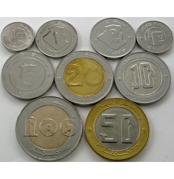 ALŽIRIJA 1/4 Dinar / 100 Dinars 1992/2018 - Lot 9 kovancev - UNC