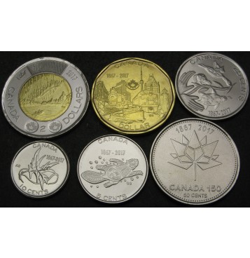 KANADA 5 Cents / 2 Dollars 2017 - Lot 6 kovancev - UNC