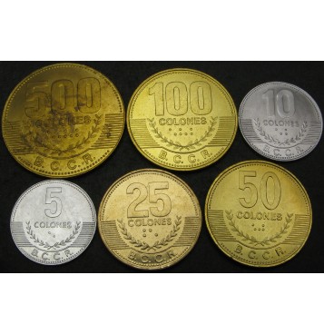 KOSTARIKA 5 Colones / 500 Colones 2003 / 2006 - Lot 6 kovancev - UNC