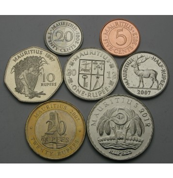 MAURITIUS 5 Cents / 20 Rupees 1997/2012 - Lot 7 kovancev - UNC