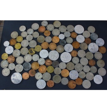 Lot 100 kovancev različnih letnic in kovnic.
