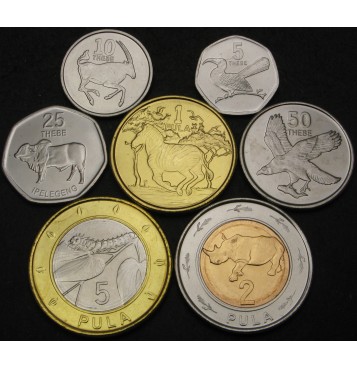 5 Thebe 2103 , 10 Thebe 2103, 25 Thebe 2102, 50 Thebe 2103, Pula 2103, 2 Pula 2103 & 5 Pula 2103.