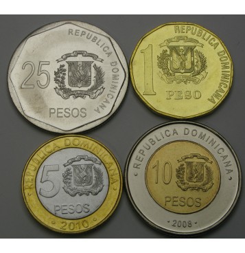 DOMINIKANSKA REPUBLIKA 1 Peso / 25 Pesos 2008/2015 - Lot 4 kovancev - UNC